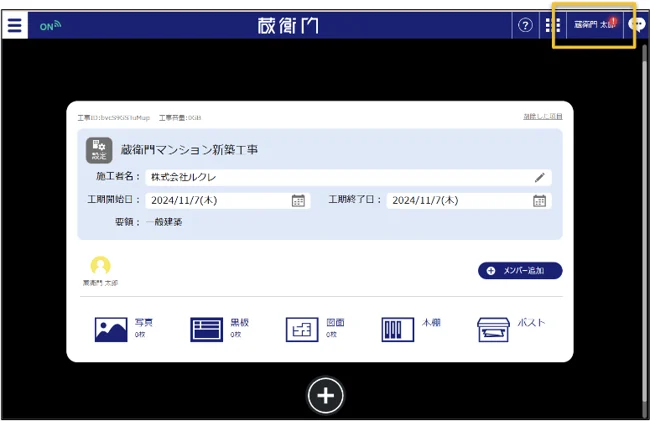 2.右上のアカウント名のボタンを押します。