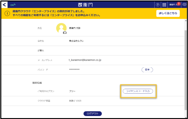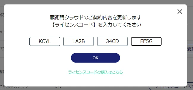 このコードを蔵衛門クラウドのアカウント情報へ入力することで、ご契約プランを変更できます。