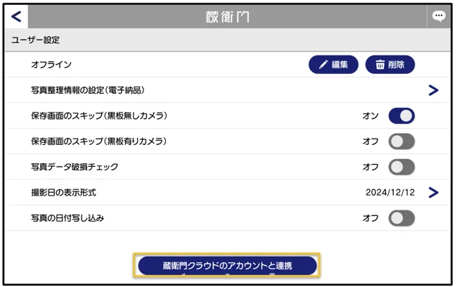 3.【蔵衛門クラウドのアカウントと連携】をタップします。
