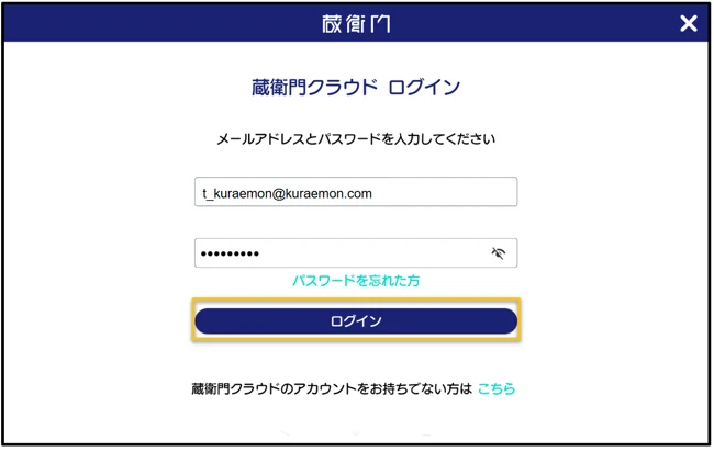 未連携アカウントの状態から『蔵衛門クラウド』と連携するには、ユーザー設定からログインする必要があります。