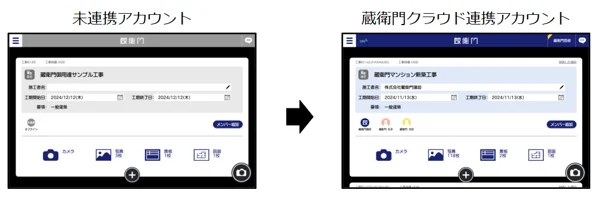 『蔵衛門クラウド』と連携を行うと未連携アカウントの時に作成した工事が、『蔵衛門クラウド』へアップロードされます。