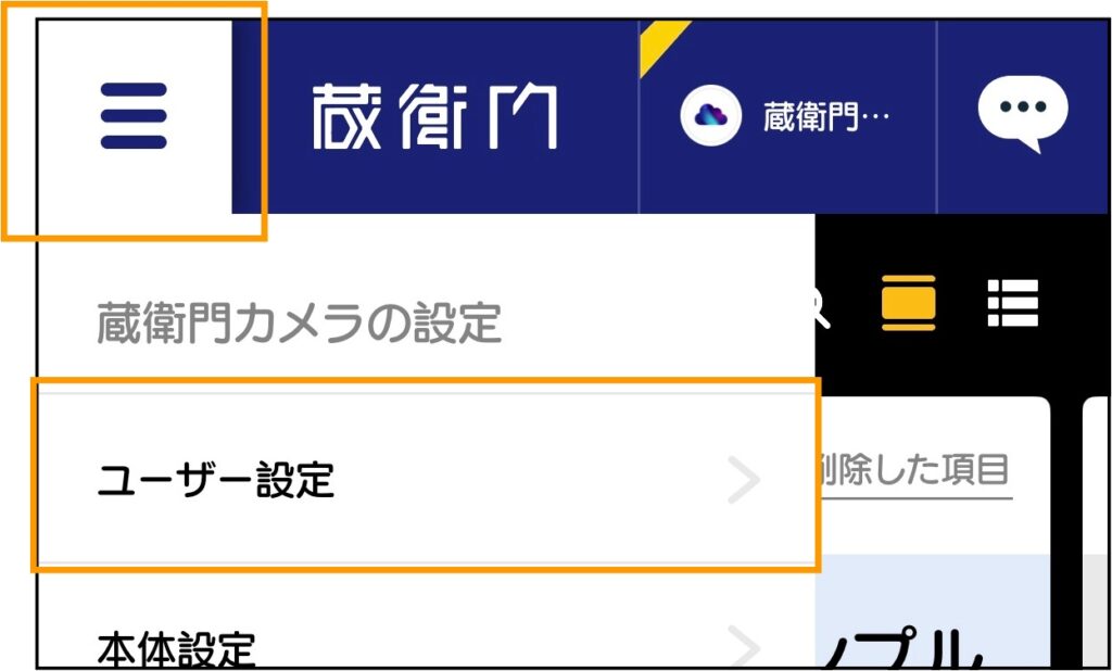 1.工事一覧より、左上の「三」をタップ、「ユーザー設定」をタップします。