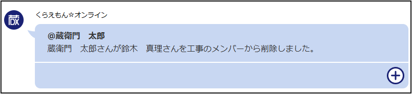 トーク画面にて、下記のように削除の操作をしたユーザー名と削除された旨が最新メッセージとして表示されます。