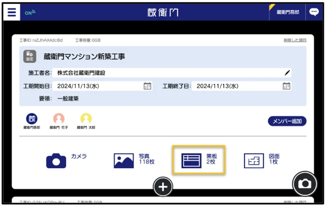 1.『蔵衛門Pad』で【黒板】をタップします。