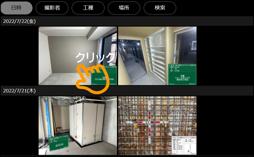 ※「クラウド台帳」対応工事の場合、「写真」をクリックすると写真一覧ではなく最初に「台帳」へ移動します。