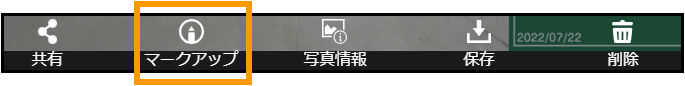 4.画面下部にある「マークアップ」ボタンを押すと、編集画面が開きます。
